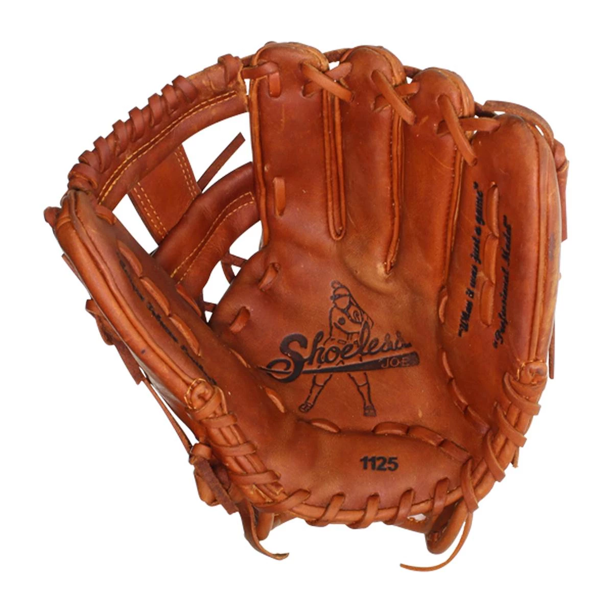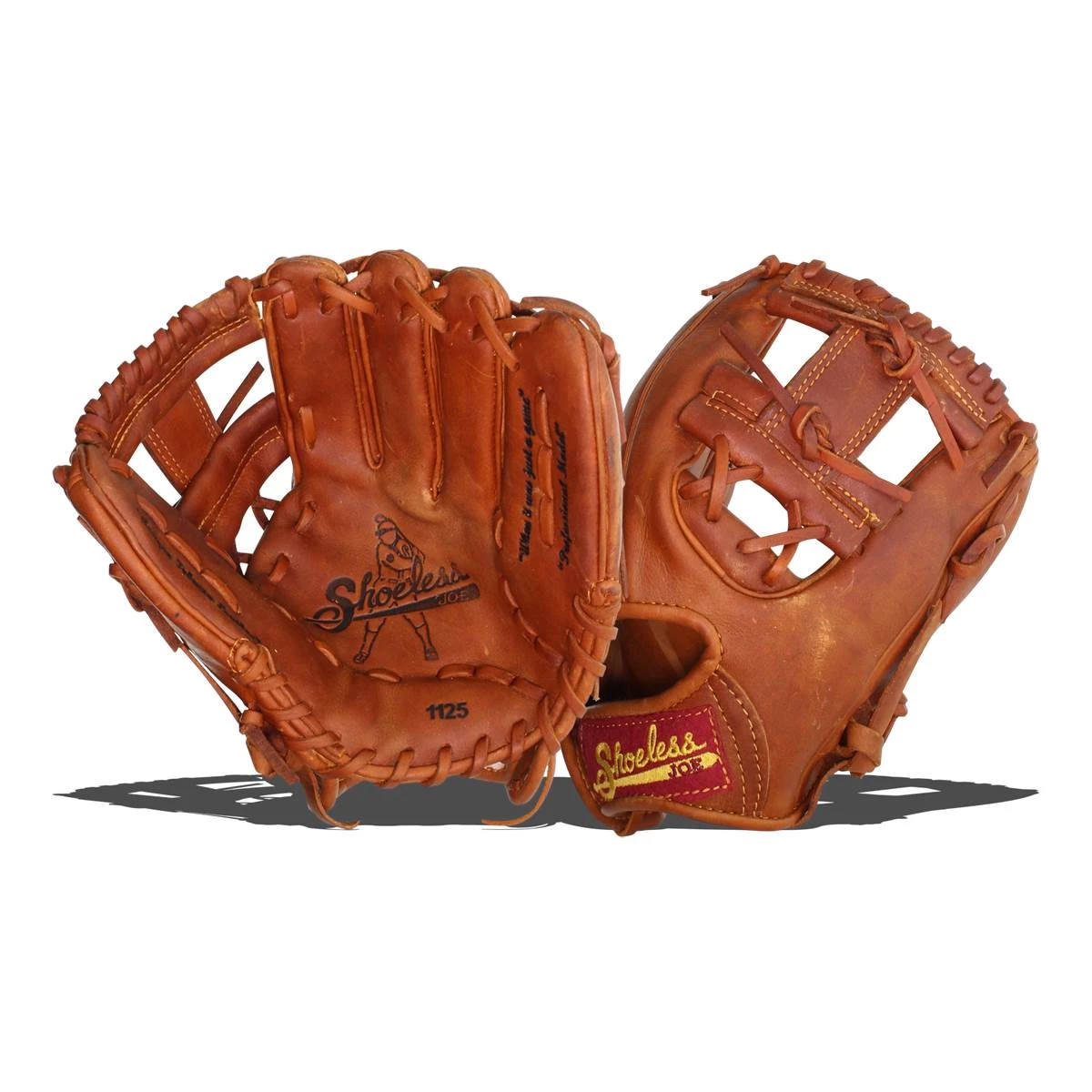 Shoeless Joe Gloves give players the quality, feel, and style of the gloves worn by professional ball players over the last 100 years. You can choose glove models worn in the first half of century in the Golden Age Series, today’s models in the Professional Model Series, or youth gloves with the Joe Junior Series. Shoeless Joe gloves are individually hand-cut and sewn from Special Aged Antique Tobacco Leather Hides. Shoeless Joe gloves are then hand-rubbed with old time ingredients to soften the leather before they go through their breaking in process. Players can choose to play with an old time or modern day web without having to change to another model. A great play is lived only once, but your glove, you’ll keep it forever. If you end a game with a clean uniform our gloves are not for you. Shoeless Joe: When It Was Just a Game. Free Shipping!