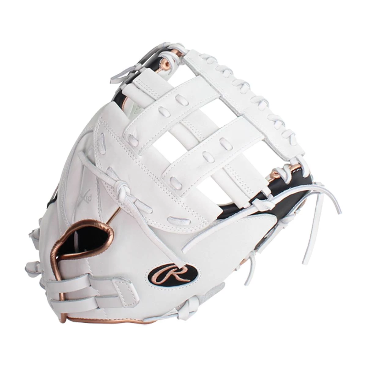 Lock it down behind the plate with Rawlings Liberty Advanced 33″ fastpitch catcher’s mitt. The Liberty Advanced line has emerged as one of the top choices for elite fastpitch athletes and is synonymous with high-end performance and eye-catching looks. This glove offers a unique colorway with a white shell, rose gold piping and black accents across the thumb, fingertips and inner lining. At 33″, this mitt is an ideal choice for adult catchers and younger players who are ready to step out of youth equipment.